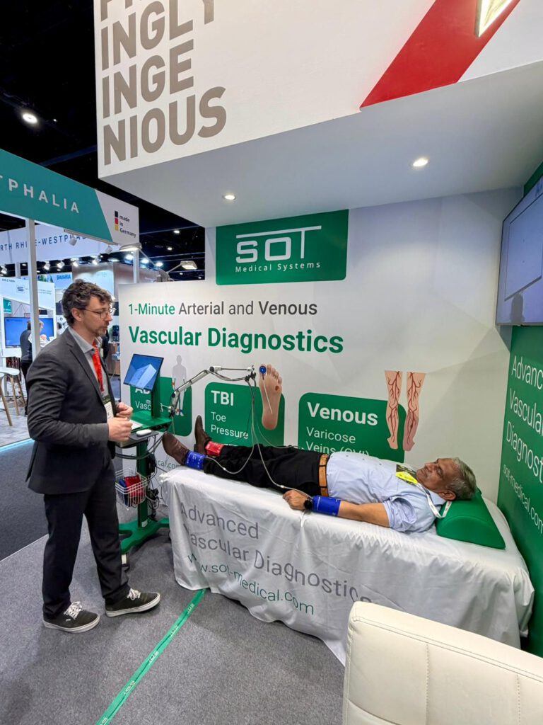 The 4th Diabetic Foot Conference in Riyadh focused on the prevention, early detection, and management of diabetic foot complications. As peripheral arterial disease (PAD) is closely linked to diabetes and often remains undetected until advanced stages, reliable and efficient vascular screening is critical for patient care. SOT Medical Systems presented its multiparametric diagnostic approach, emphasising the importance of combining well-established indices, such as the ankle-brachial index (ABI), with additional parameters to enhance diagnostic accuracy and support earlier detection.