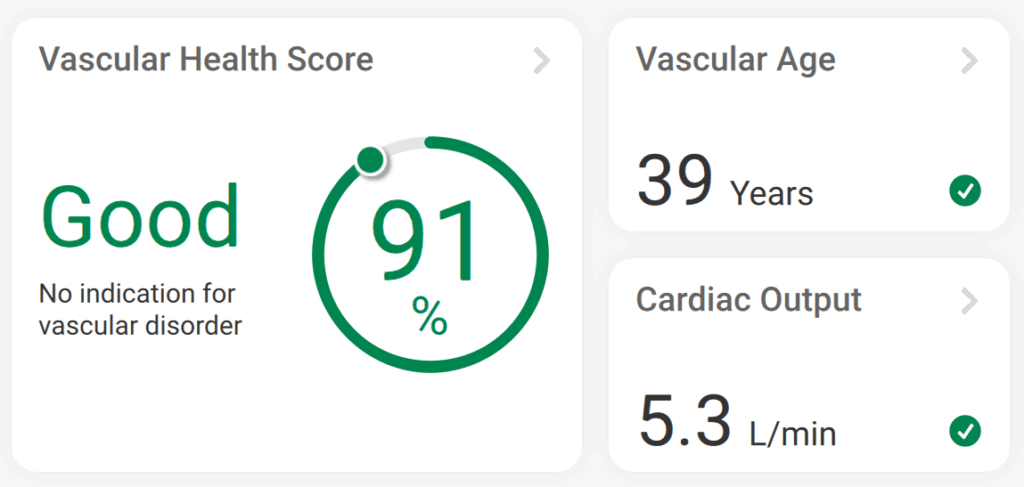The AngE™ ABI+ automatically calculates a Vascular Health Score, combining multiple parameters into one easy-to-read result. It is a standardized score that supports early detection and patient engagement.
