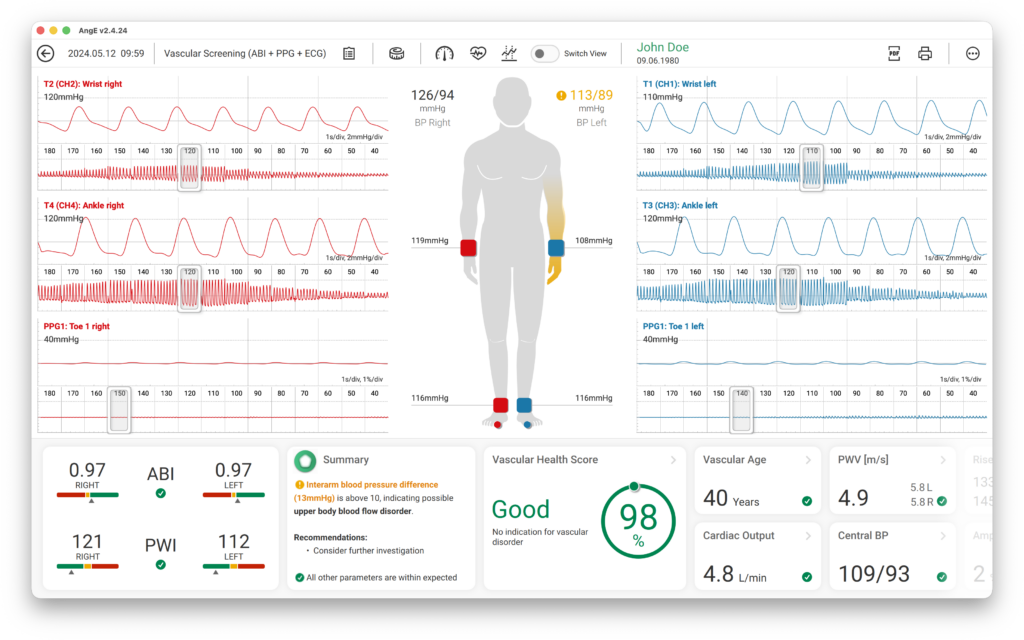 We have been using the AngE ABI+ system for several weeks now and are extremely satisfied. The examination is quick and straightforward, integrates seamlessly into our workflow, and provides a wide range of important vascular parameters in a clear and patient-friendly report. We highly recommend it for preventive medicine and cardiology applications.